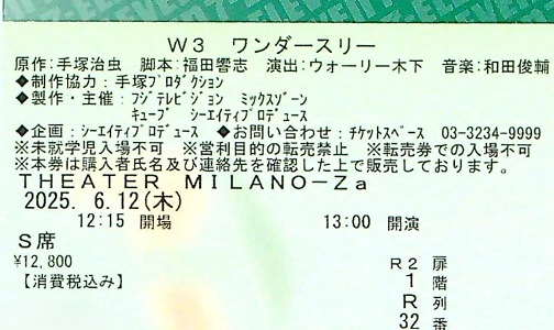 | 06月07〜29日 | W3 ワンダースリー | フジテレビジョン,ミックスゾーン,キューブ,シーエイティプロデュース | THEATER MILANO-Za | 福田響志,ウォーリー木下 | 井上瑞稀,平間壮一ほか | パンフレット,チケット | |