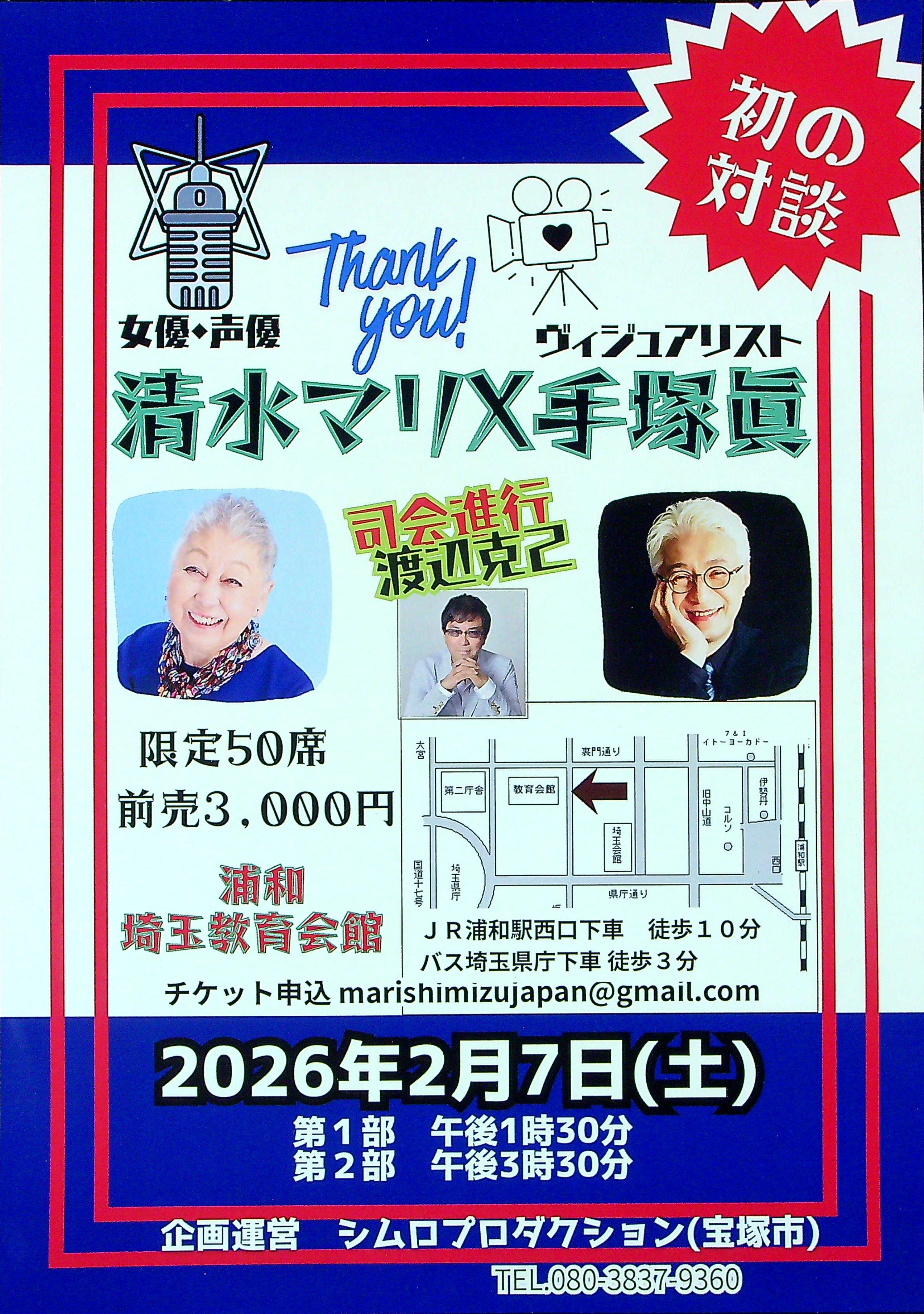 | 02月07日 | 清水マリ×手塚眞 | シムロプロダクション | 浦和埼玉教育会館 | チラシ表,チラシ裏 |